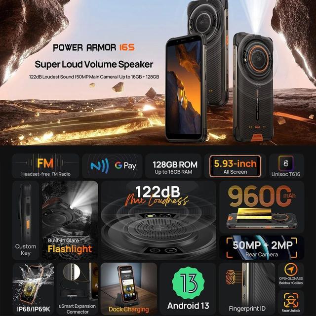 Захищений смартфон Ulefone Power Armor 16S Black NFC 8/128GB 9600мАч 122dB Speaker